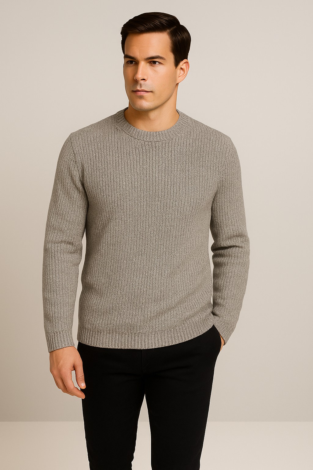 Açık gri renkli giyinen modelin boyu 175 cm’dir.