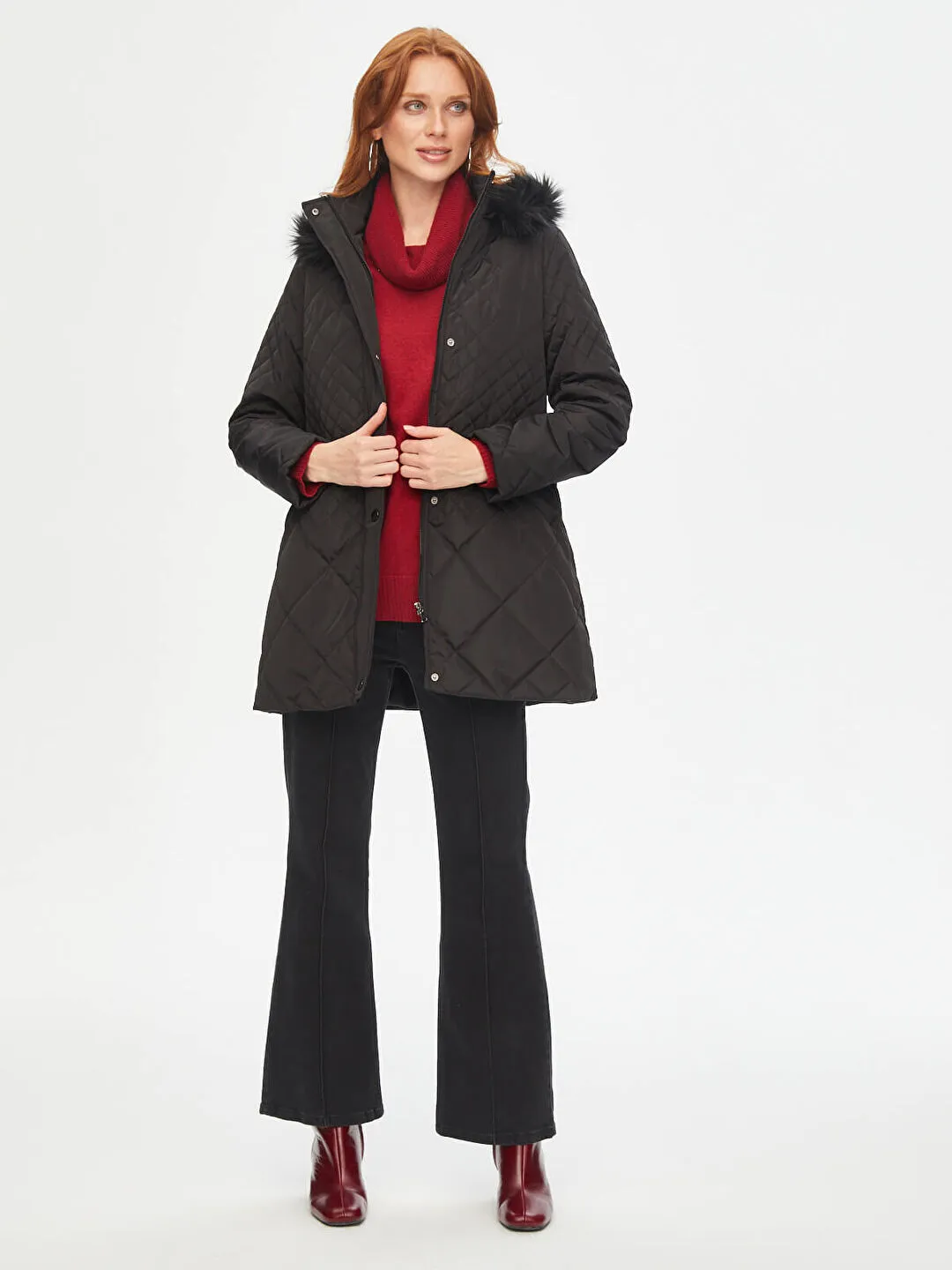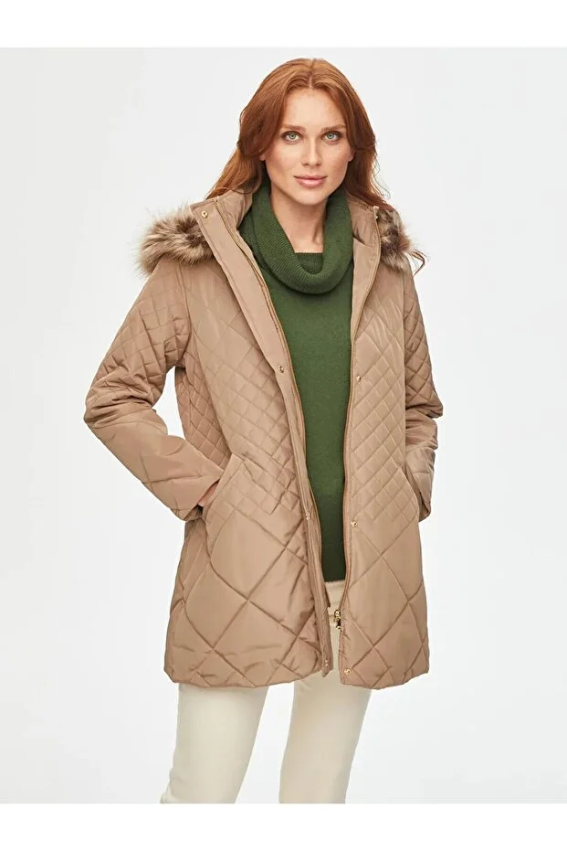 FAİK SÖNMEZ Kürk Kapşonlu Kapitone Kaban 041 Bej