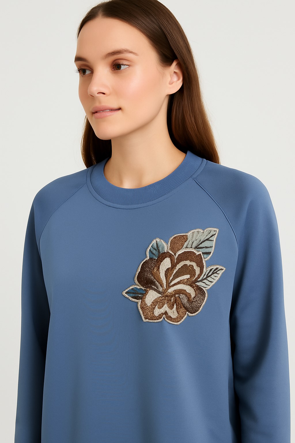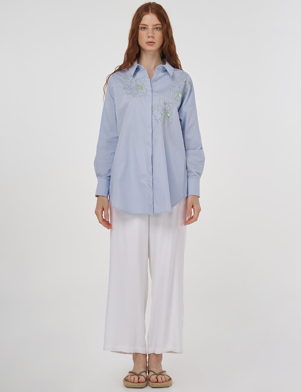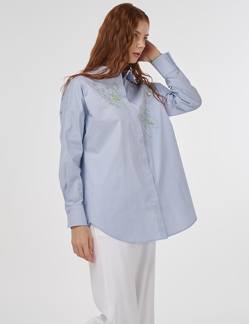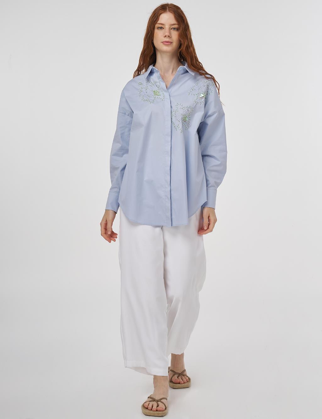 KAYRA İşleme Detaylı Pamuklu Tunik 21103 Mavi