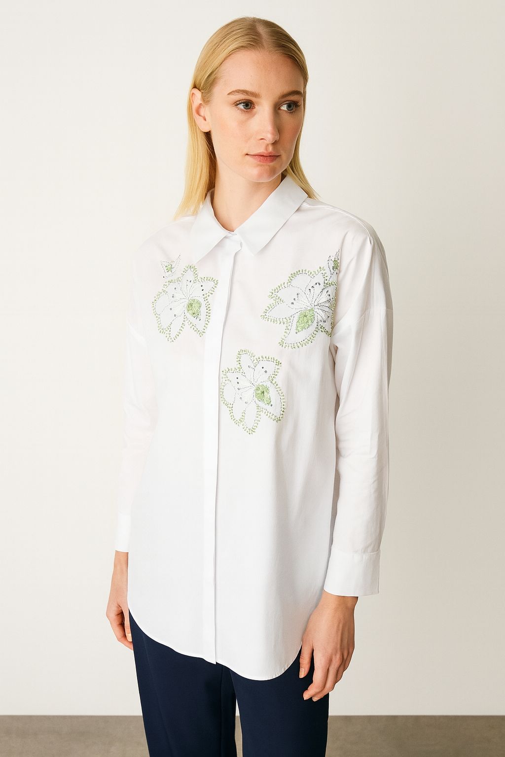 KAYRA İşleme Detaylı Pamuklu Tunik 21103 Beyaz