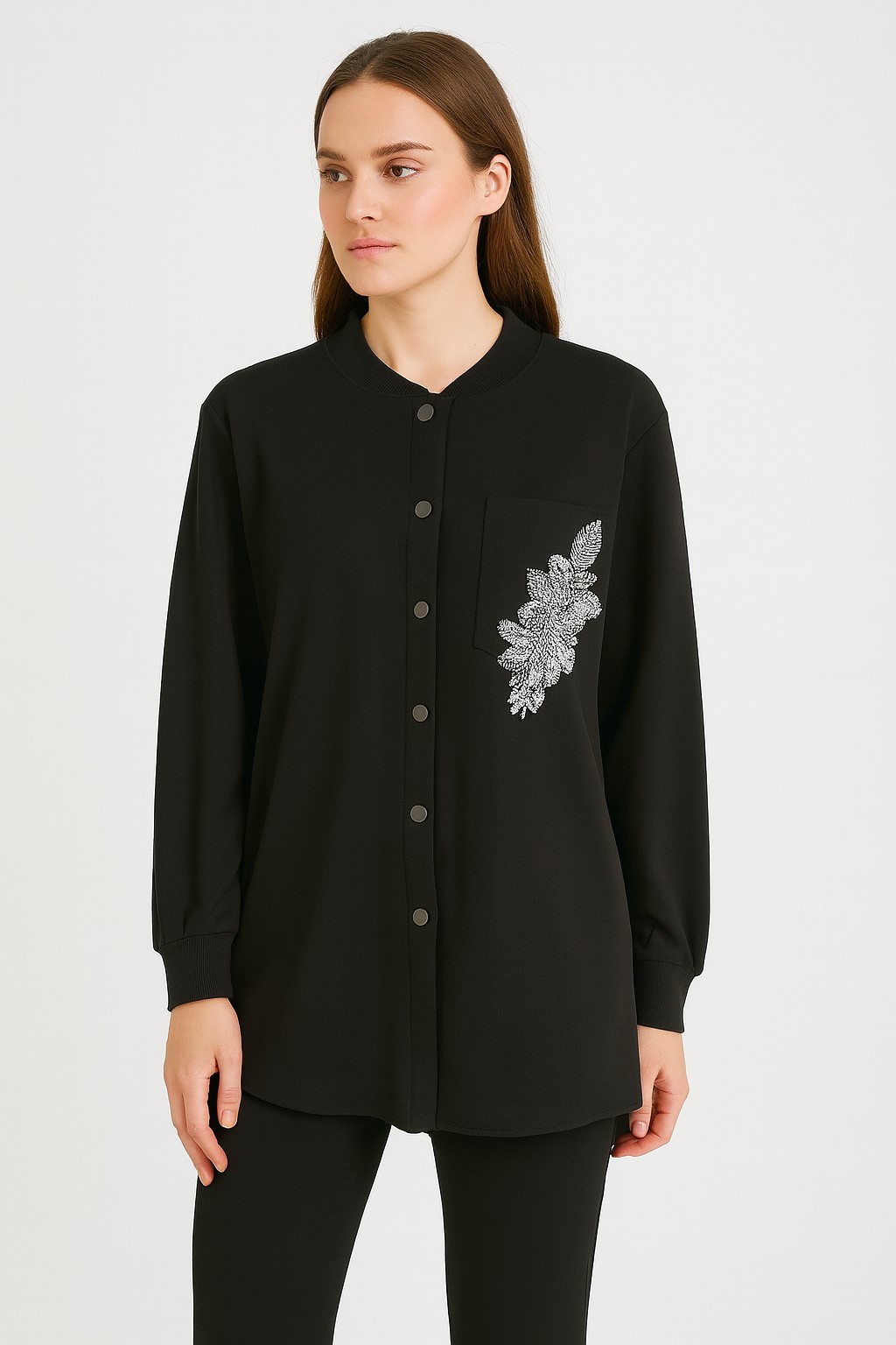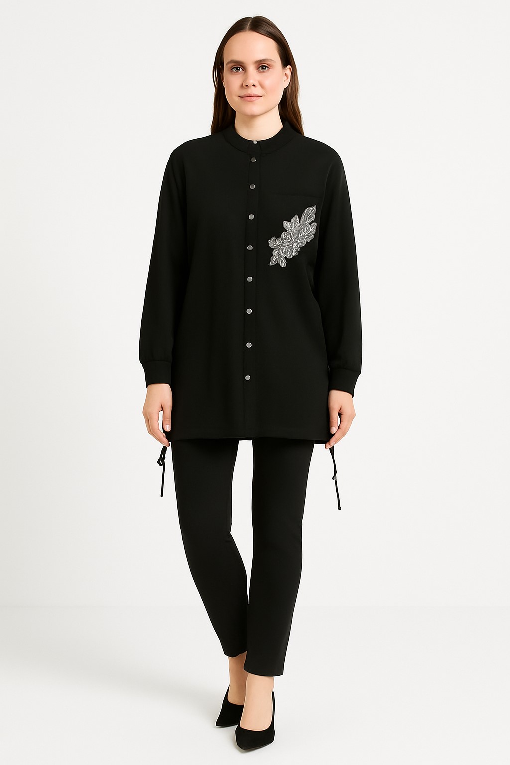 KAYRA Cep Taş İşleme Detaylı Tunik 21088 Siyah