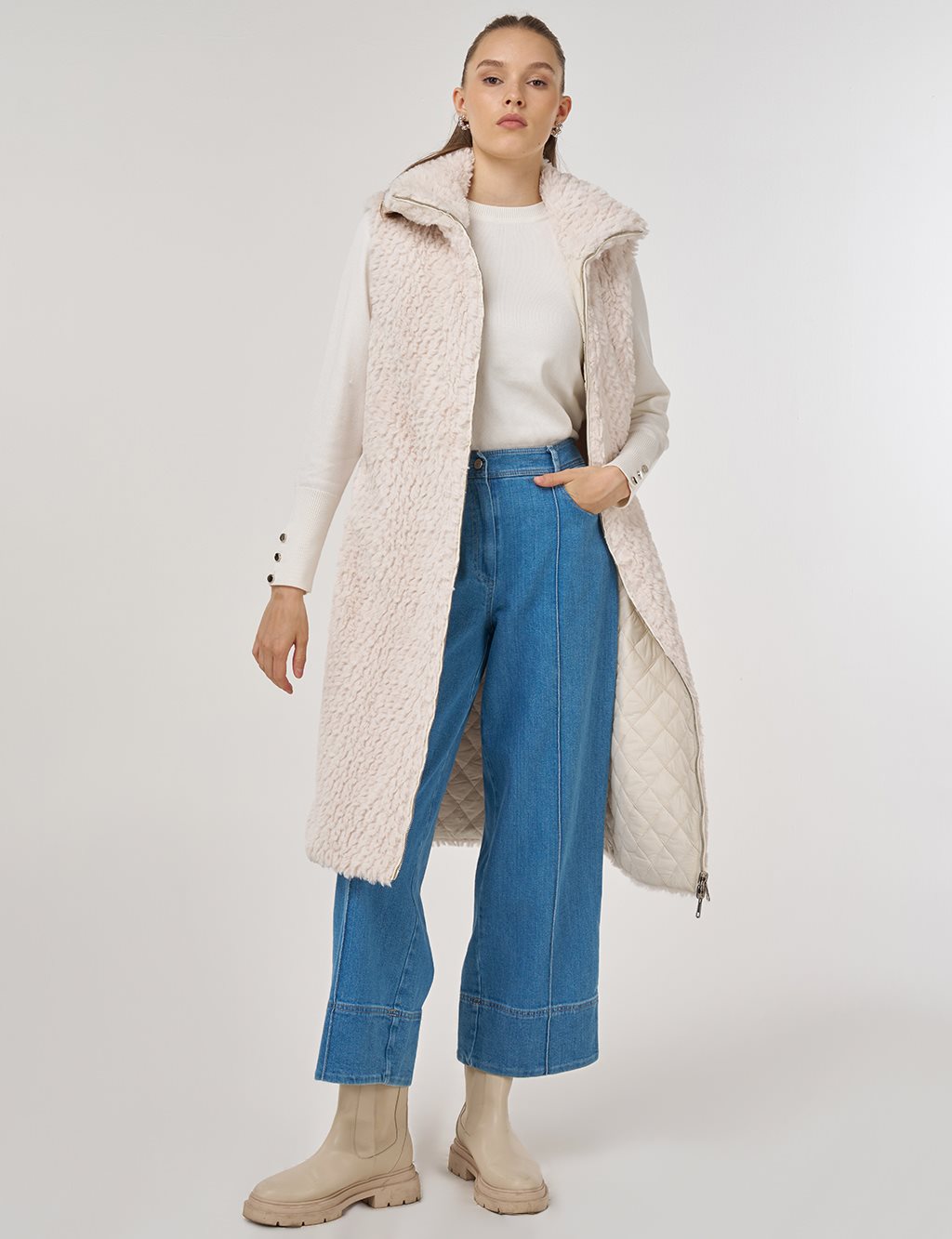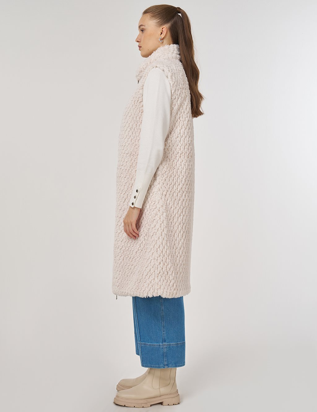 KAYRA Fermuar Kapamalı Çift Taraflı Yelek 20012 Ekru
