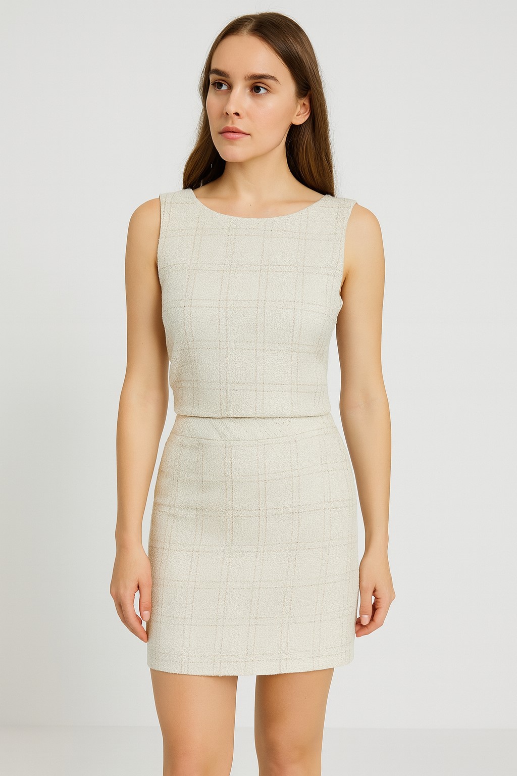 MEZZURA Kendinden Desenli Triko Etek 1504 Ekru