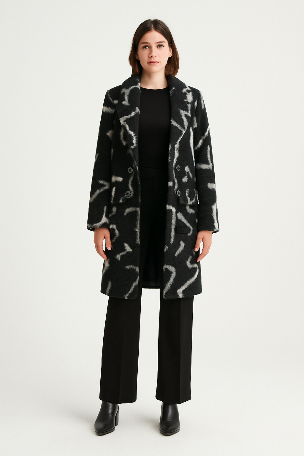 EKOL Desenli Kaşe Kaban 6301 Siyah