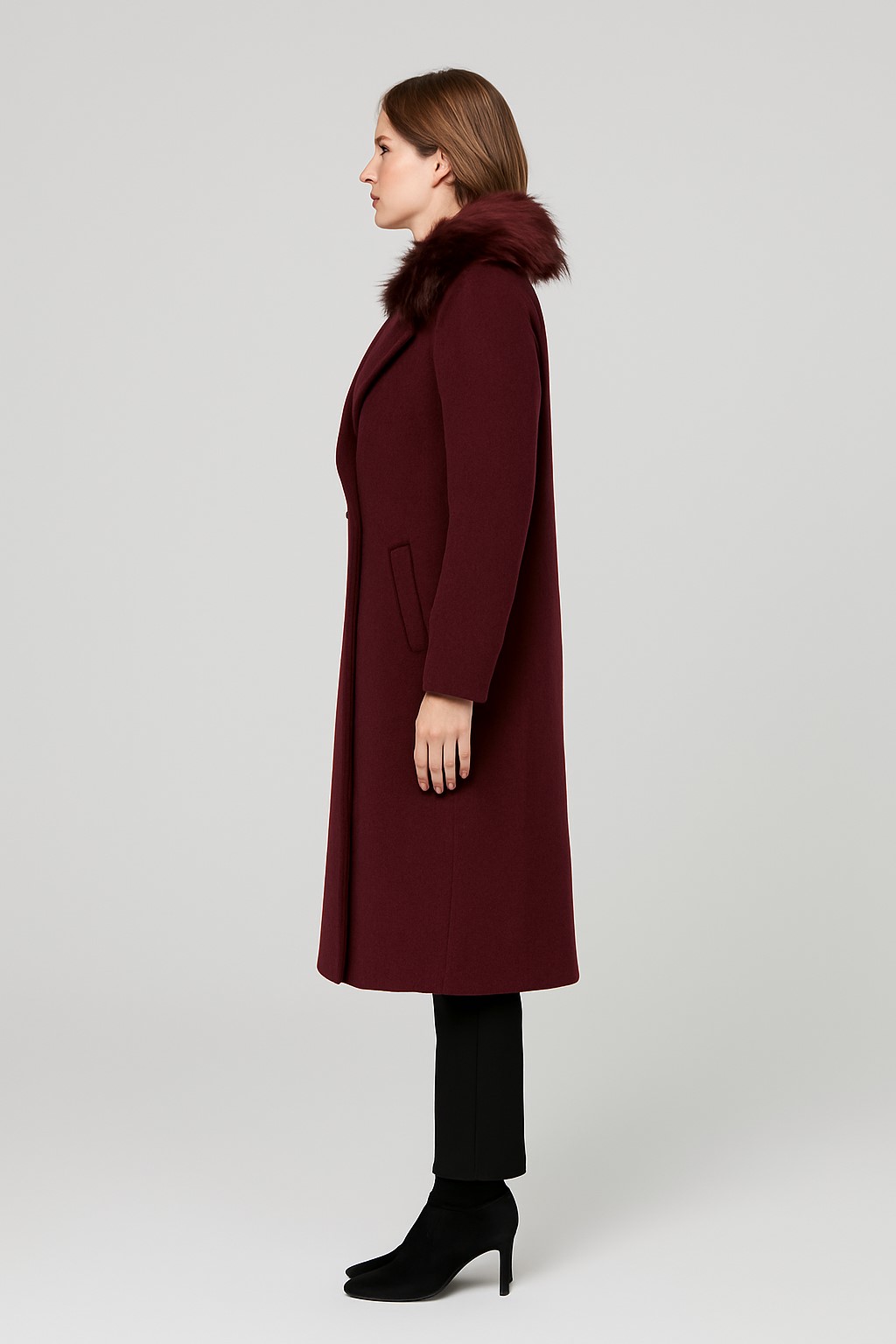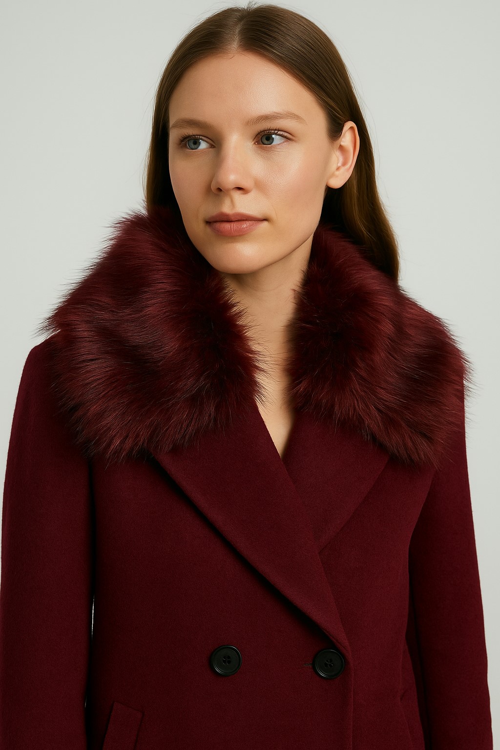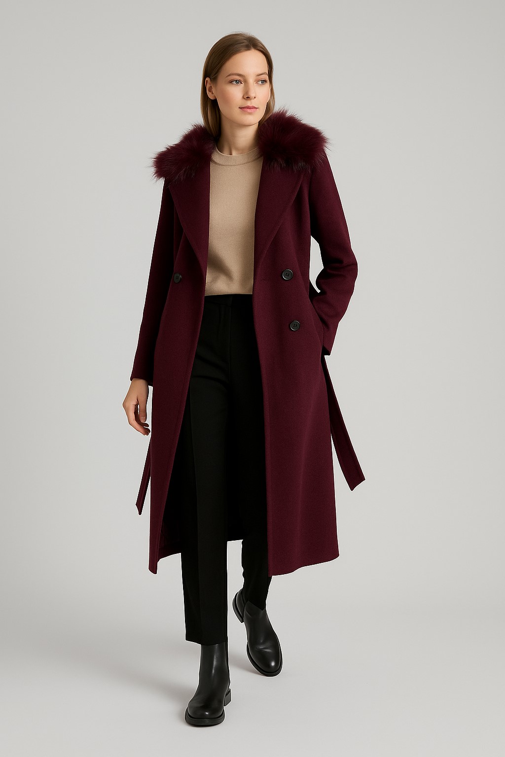 EKOL Yakası Kürklü Beli Kuşaklı Kaban 6001 Bordo