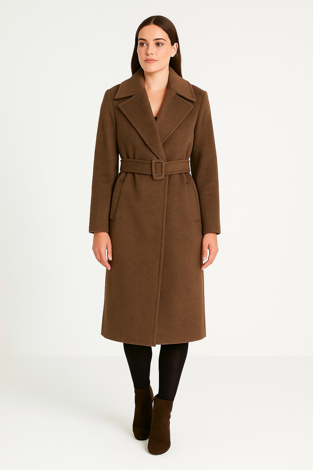 EKOL Beli Kuşaklı Kaban 6053 Kahve