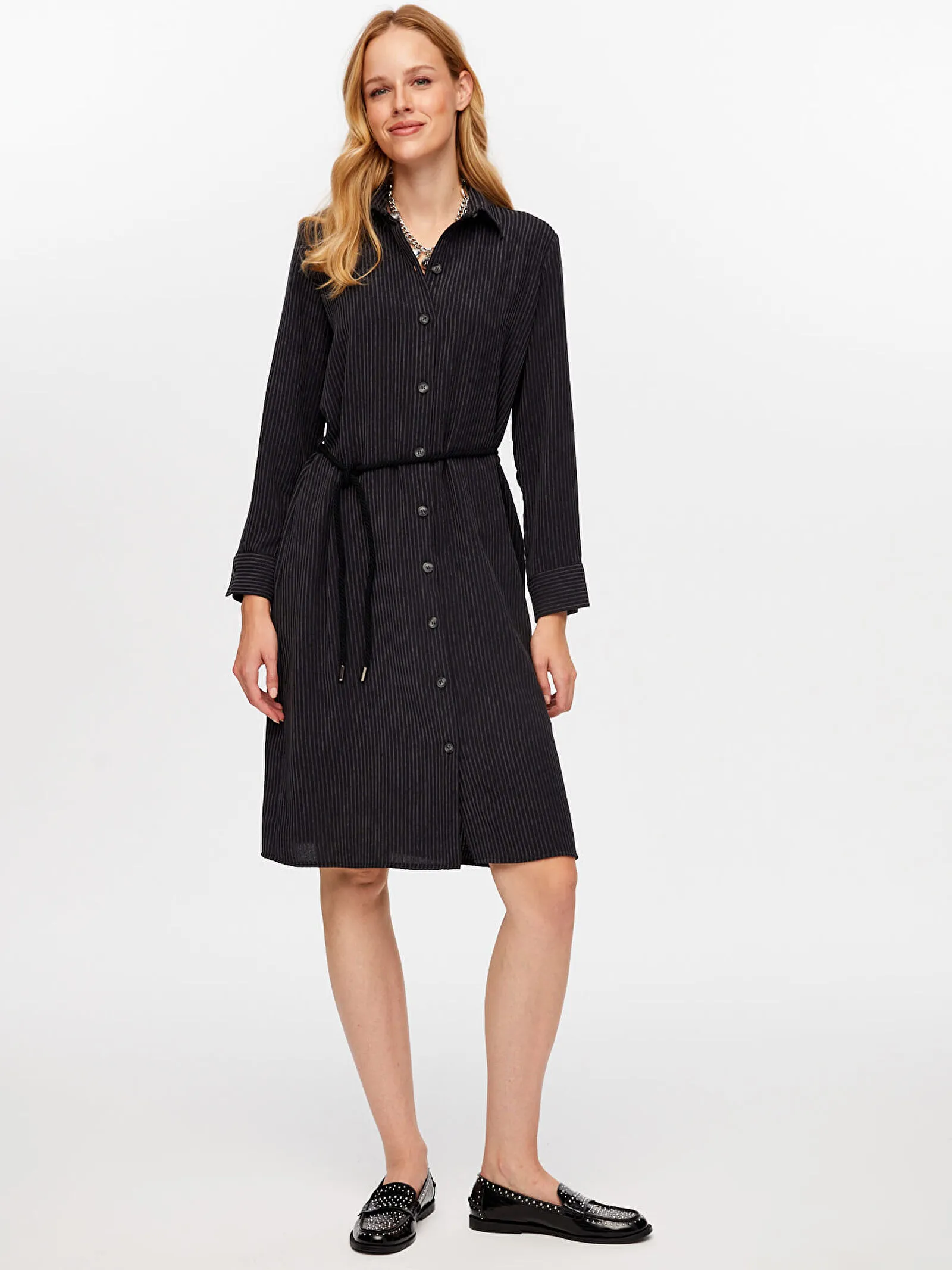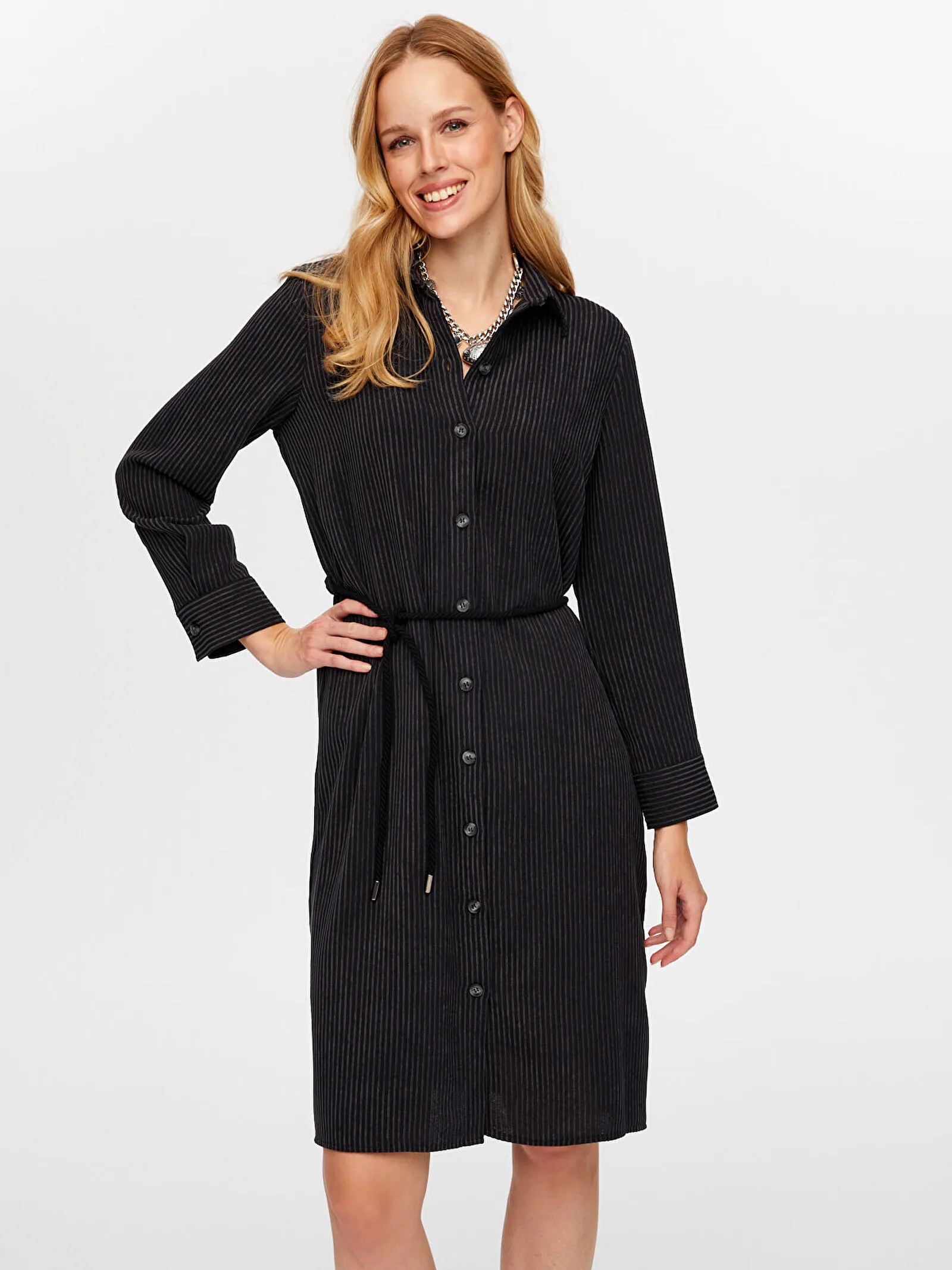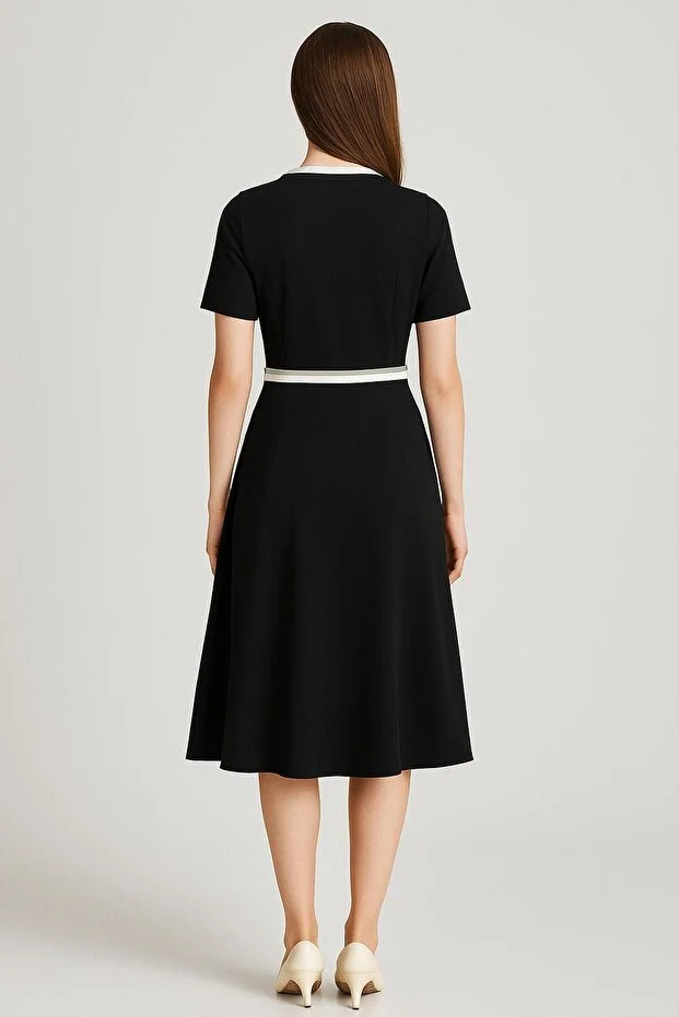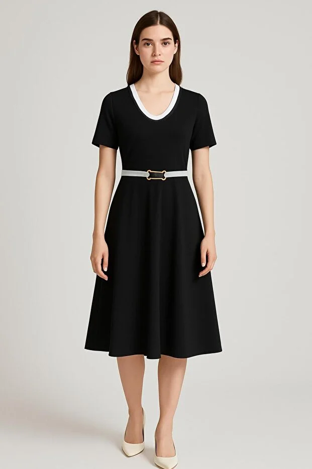DİZAYN Kemerli Elbise 4376 Siyah