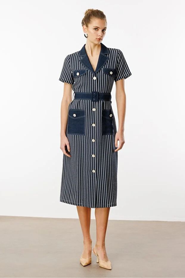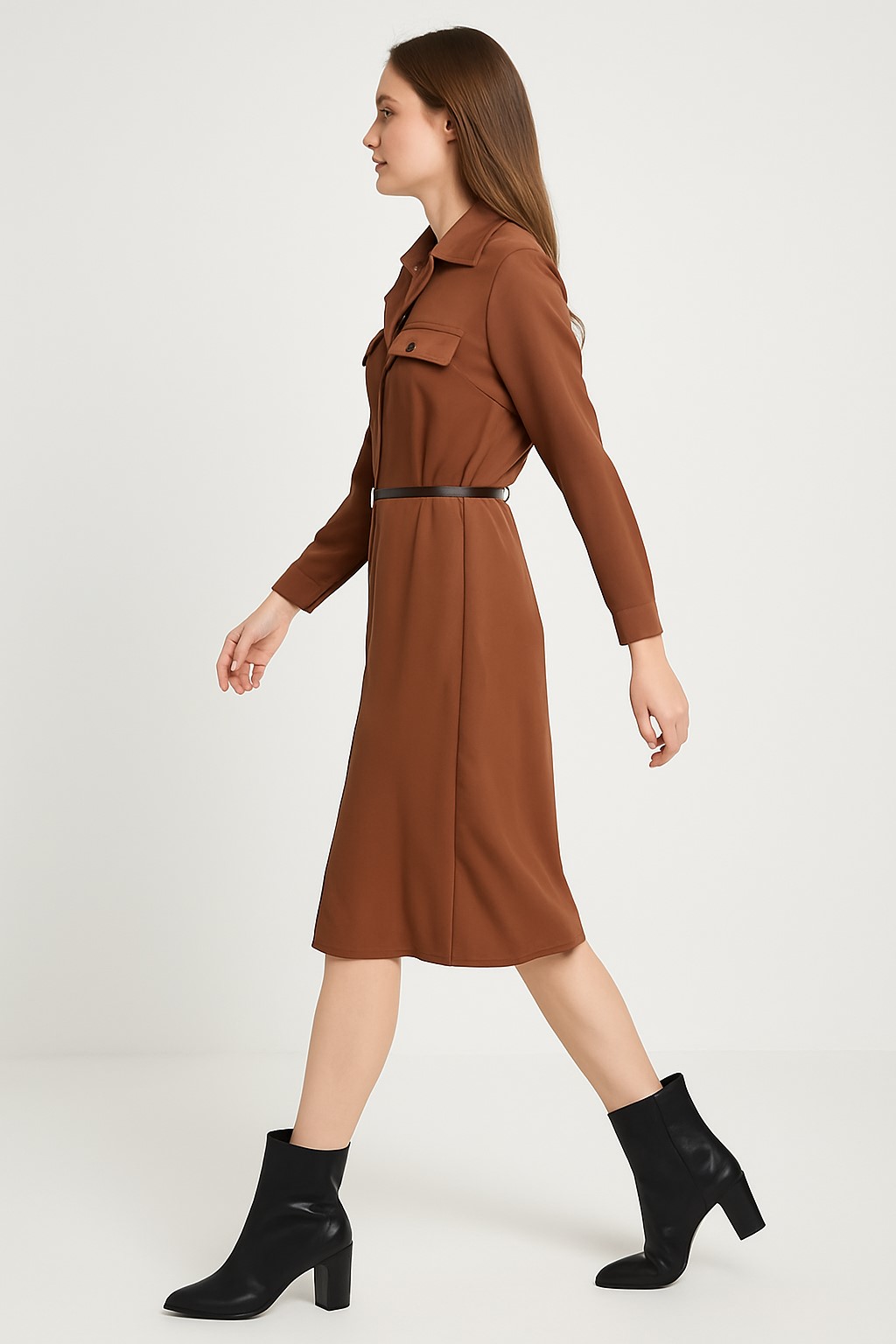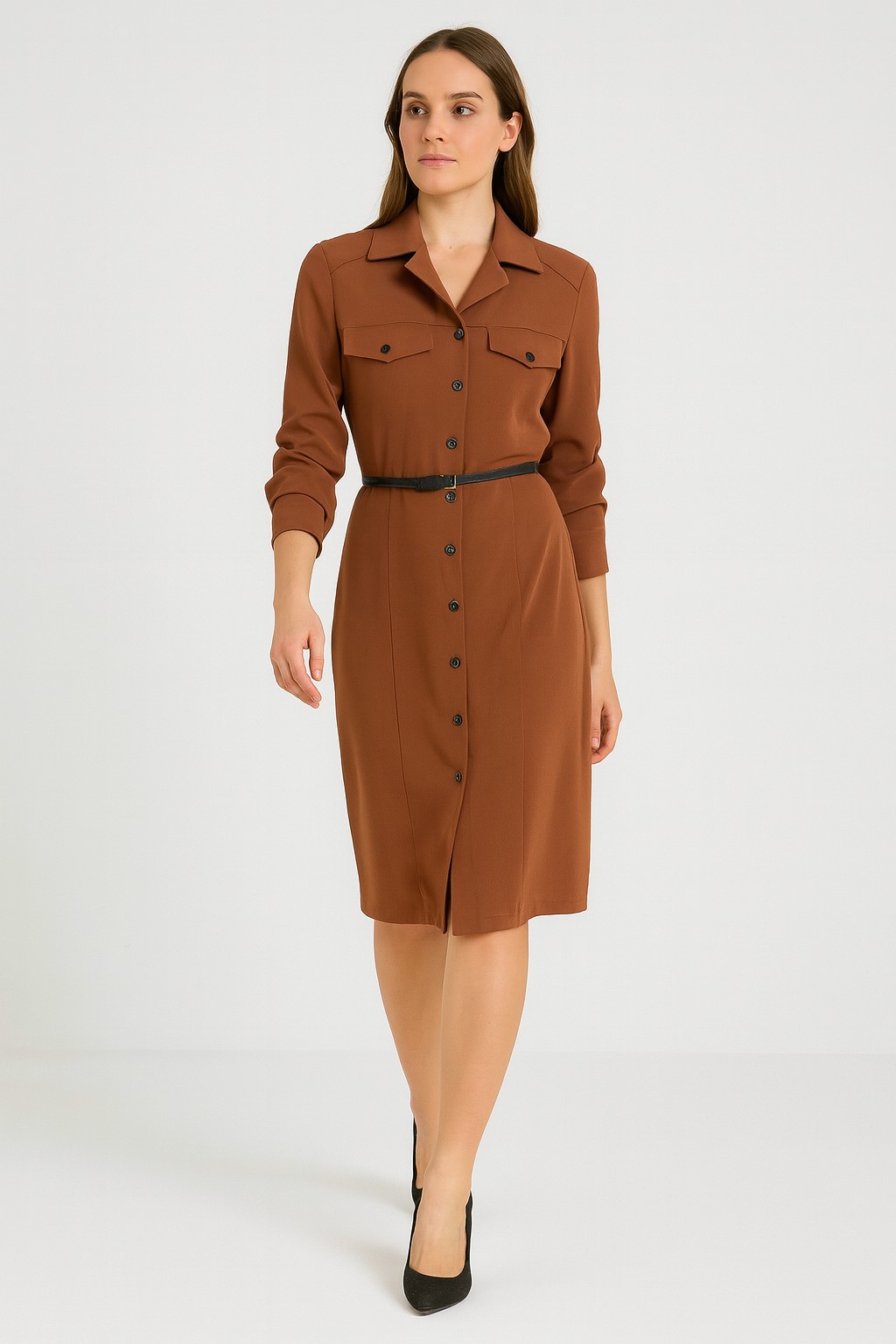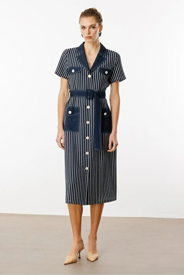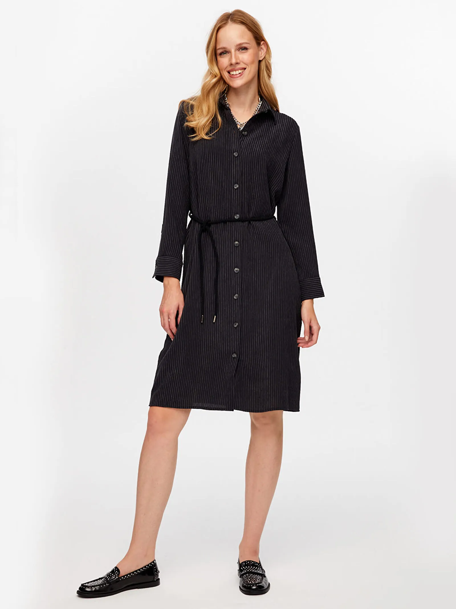 DİZAYN Kemerli Elbise 4376 Siyah