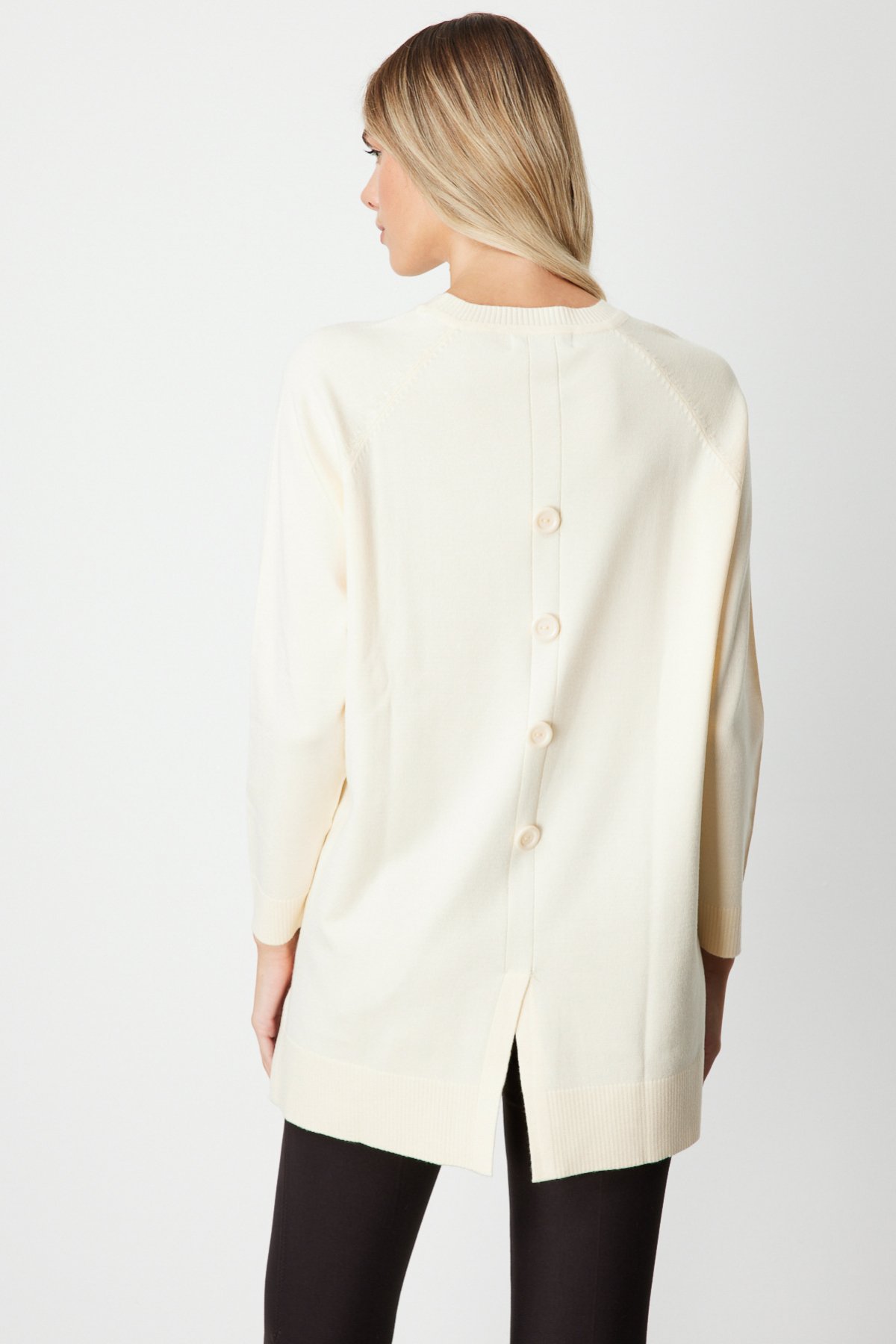 ON TRİKO Arkası Düğmeli Sıfır Yaka Kazak 65413 Krem