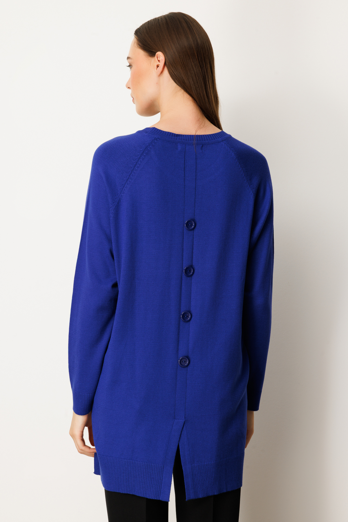 ON TRİKO Arkası Düğmeli Sıfır Yaka Kazak 65413 Saks