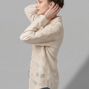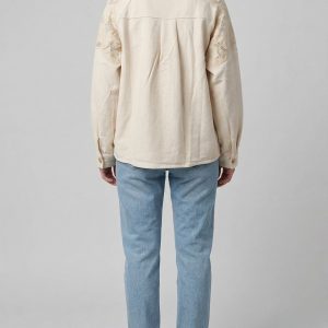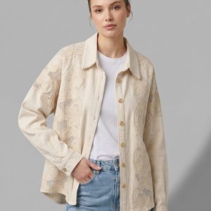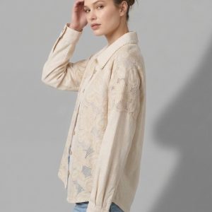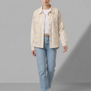 Düğme Kapamalı İşlemeli Kot Gömlek