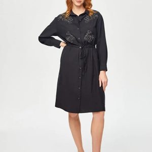Boncuk Ve Zincir Nakış Detaylı Liyoselli Elbise