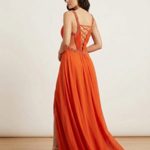 CENTİLMEN Büzgü Detaylı Askılı Turuncu Şifon Abiye Elbise 2016