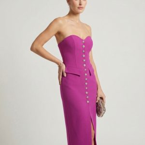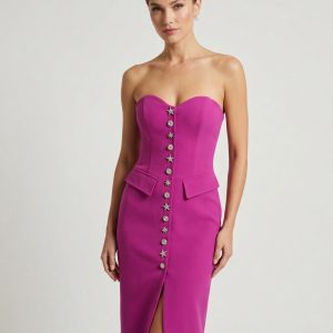 CENTİLMEN Straplez Taş Düğme Detaylı Elbise 2309