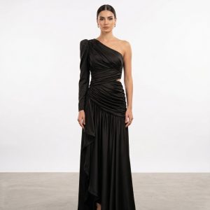 CENTİLMEN Tek Kol Pencere Detaylı Büzgülü Abiye 8102