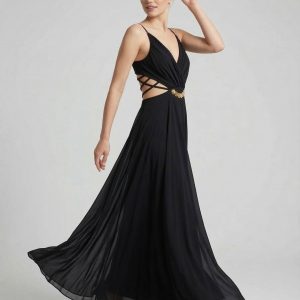 DORİDORCA Aksesuar Detaylı Askılı Abiye Elbise 5025