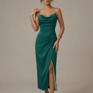 DORİDORCA Taş Askılı Yırtmaçlı Elbise 5026