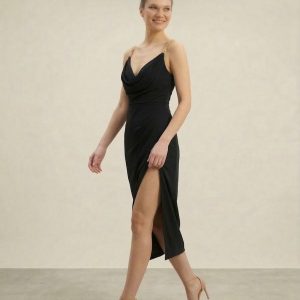 DORİDORCA Taş Askılı Yırtmaçlı Elbise  5026