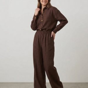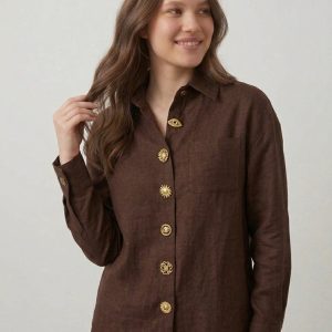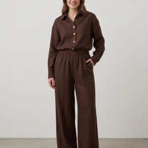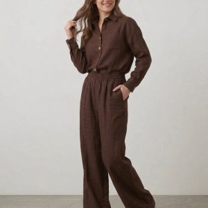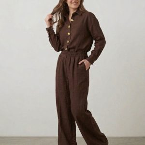 DOSSO DOSSİ PHARDİ Tasarım Düğmeli Keten Casual İkili Takım 7354