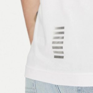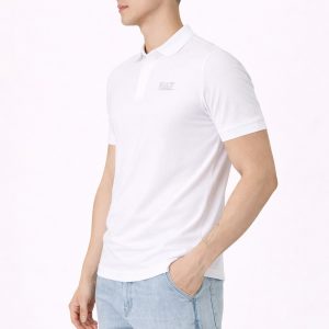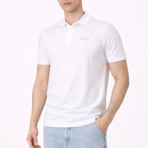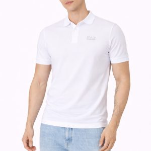 EA7 Emporio Armani markalı, jarse kumaştan üretilmiş erkek polo tişörtü. Pamuklu, jarse kumaş Klasik nervürlü polo yaka Üç düğmeli patlet Göğüs kısmında beyaz logo Kısa kollu Ribana manşetler Arka etek ucunda özgün baskı Dar kesim %95 Pamuk, %5 Elastan