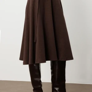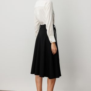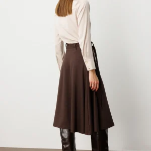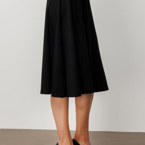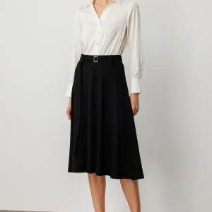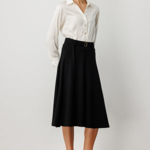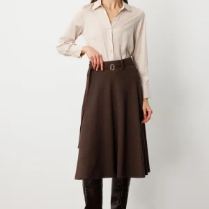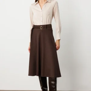 EKOL Beli Kemerli Volanlı Midi Etek 2037