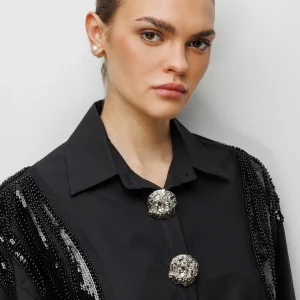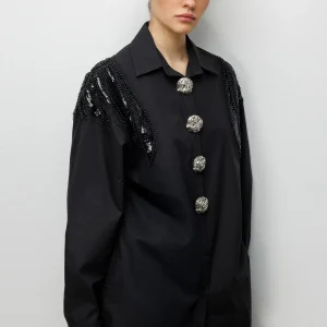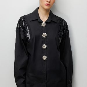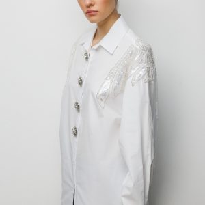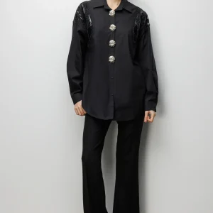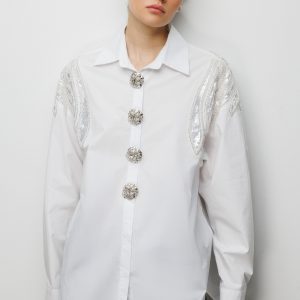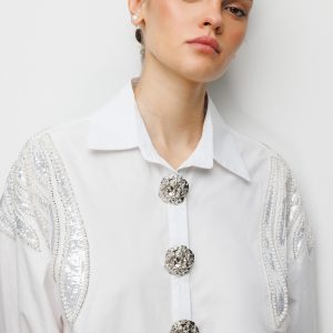 EKOL Boncuk İşlemeli Süs Metal Düğmeli Gömlek 2824