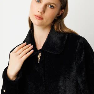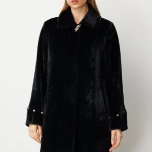 EKOL Büyük Beden Metal Broşlu Peluş Kadın Kaban 6331