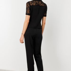 Dantel Detaylı Siyah Kadın Ceket 4042