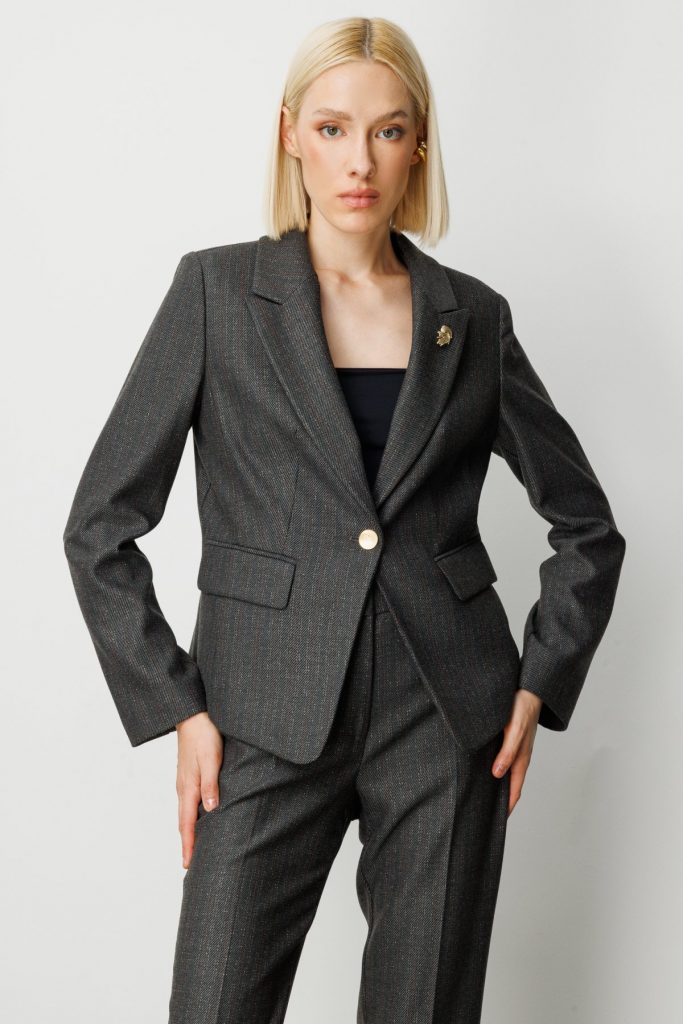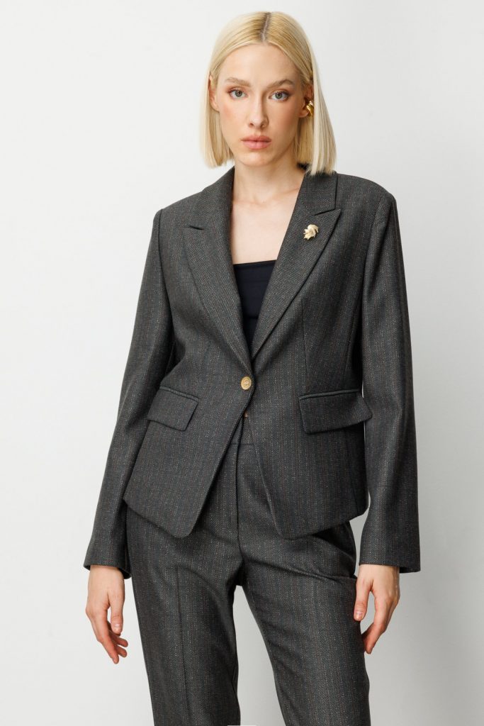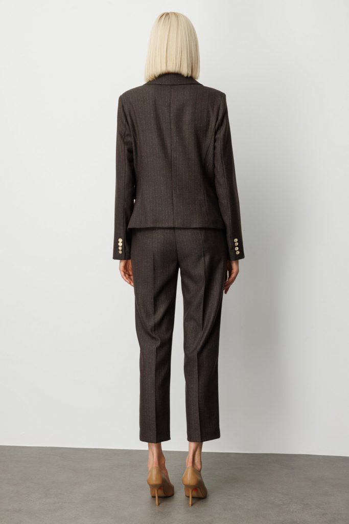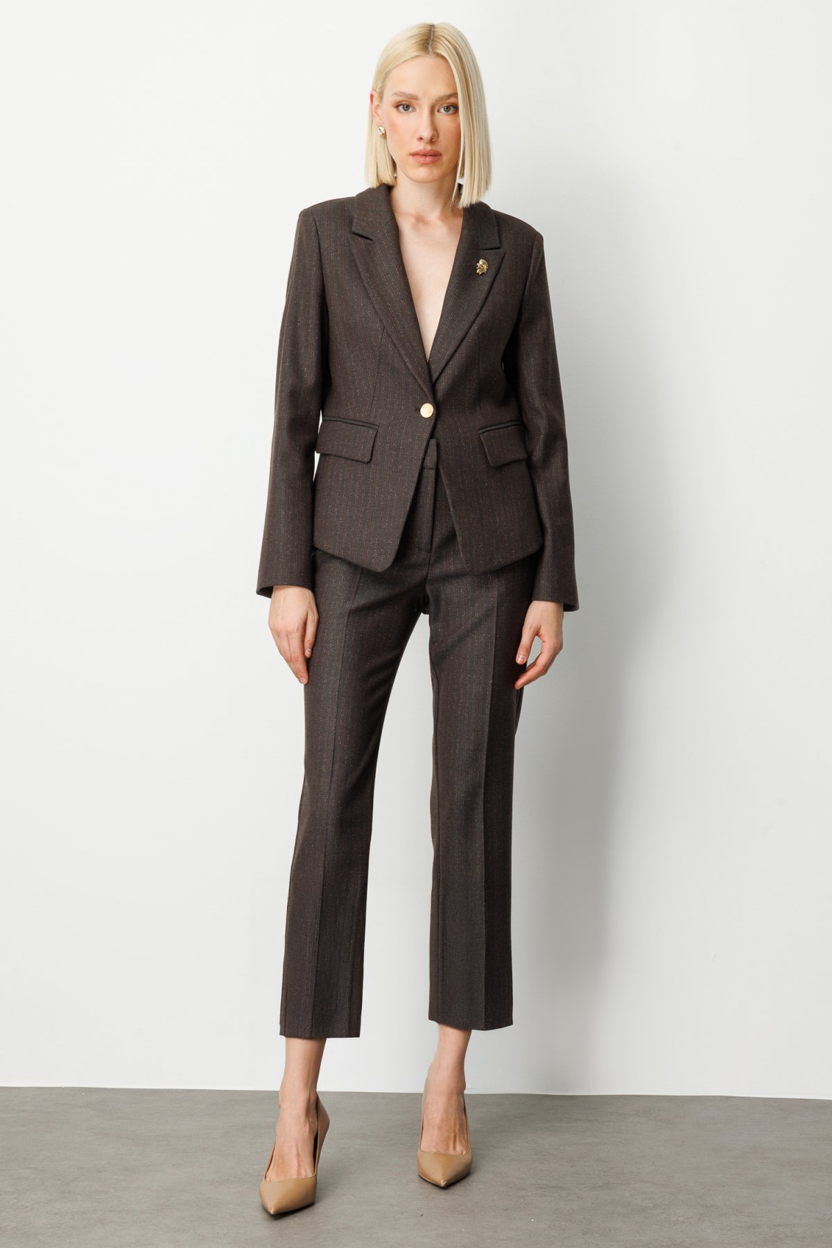 EKOL Yakası Broşlu Kapak Cepli Ceket 5113 Kahve