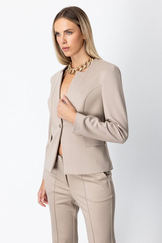 EKOL Tek Düğme Simli Kumaş Ceket 5141 Siyah