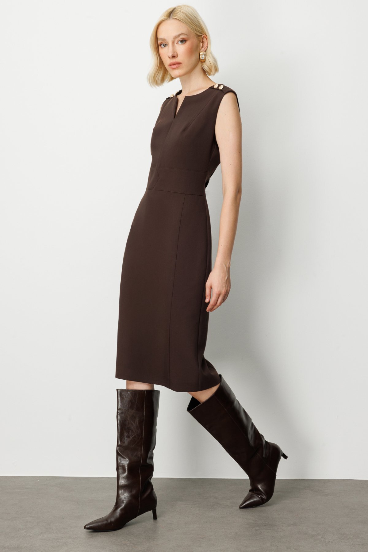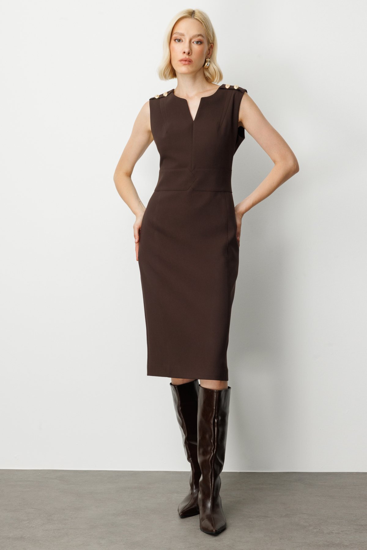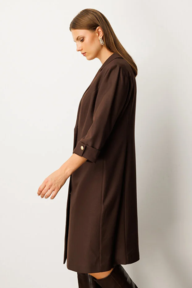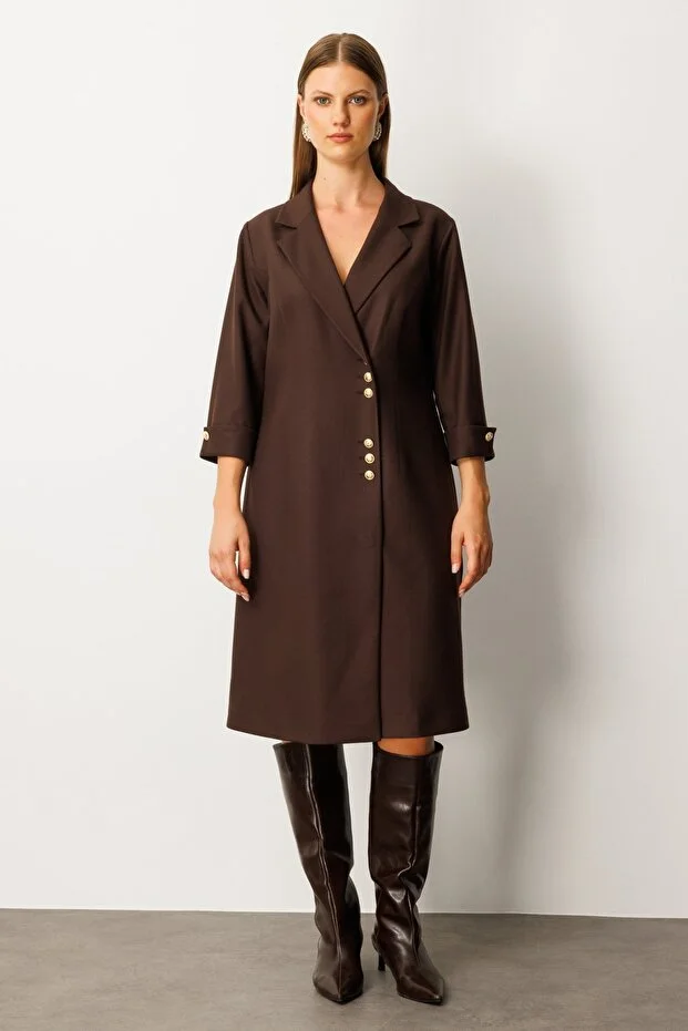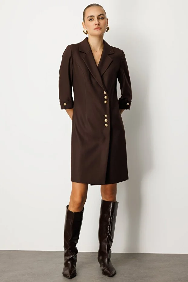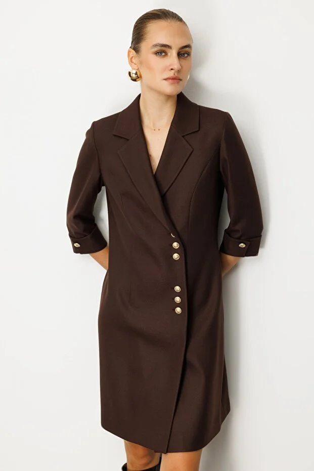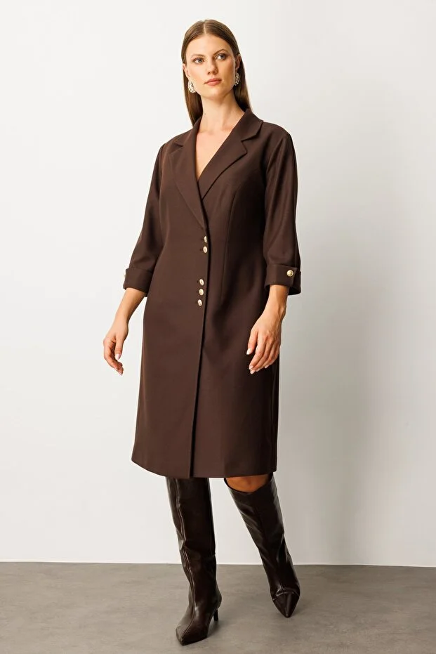 Ürün Kalıbı: RegularÜrün Kalınlığı: OrtaÜrün Boyu: 112Kumaş İçeriği: %100 PolyesterKumaş Tipi: PolyesterAstar Durumu: AstarsızYaka Tipi: V YakaKol Tipi: Yarım KolKol Boyu: Truvakar KolÜrün Sezonu: 2026 KışManken Ölçüleri: 1.76 cm 84/61/89 Beden: 36