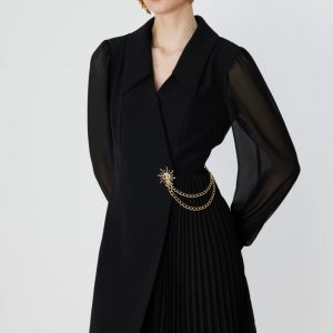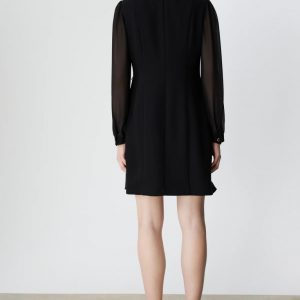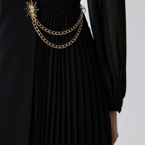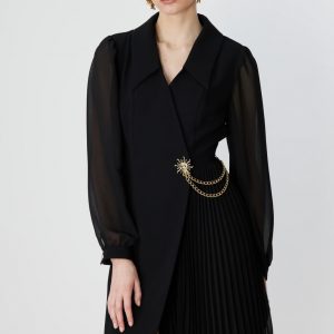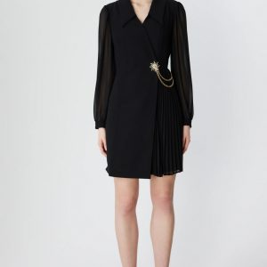 EKOL Metal Aksesuarlı Kolları Tül Mini Elbise 6048