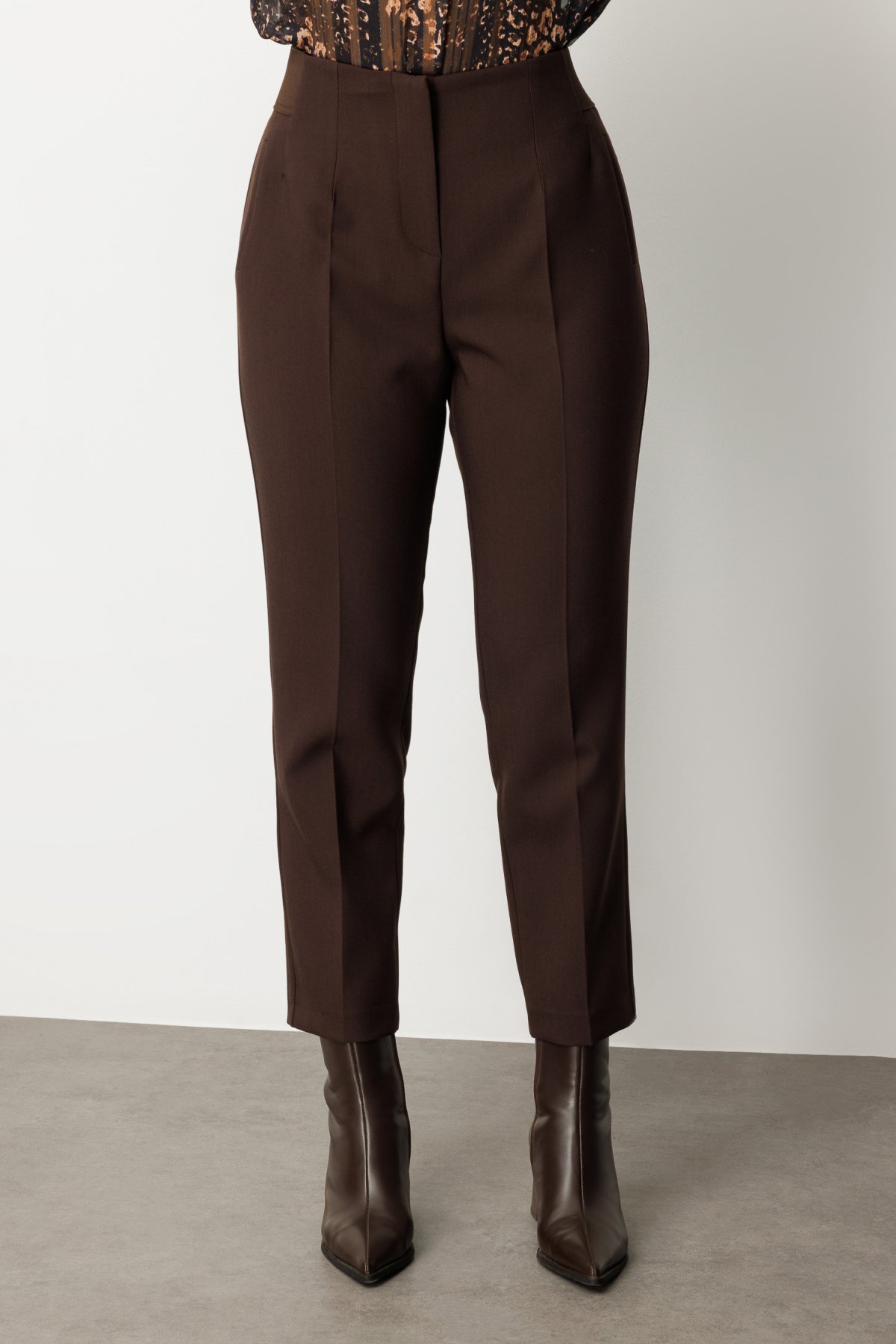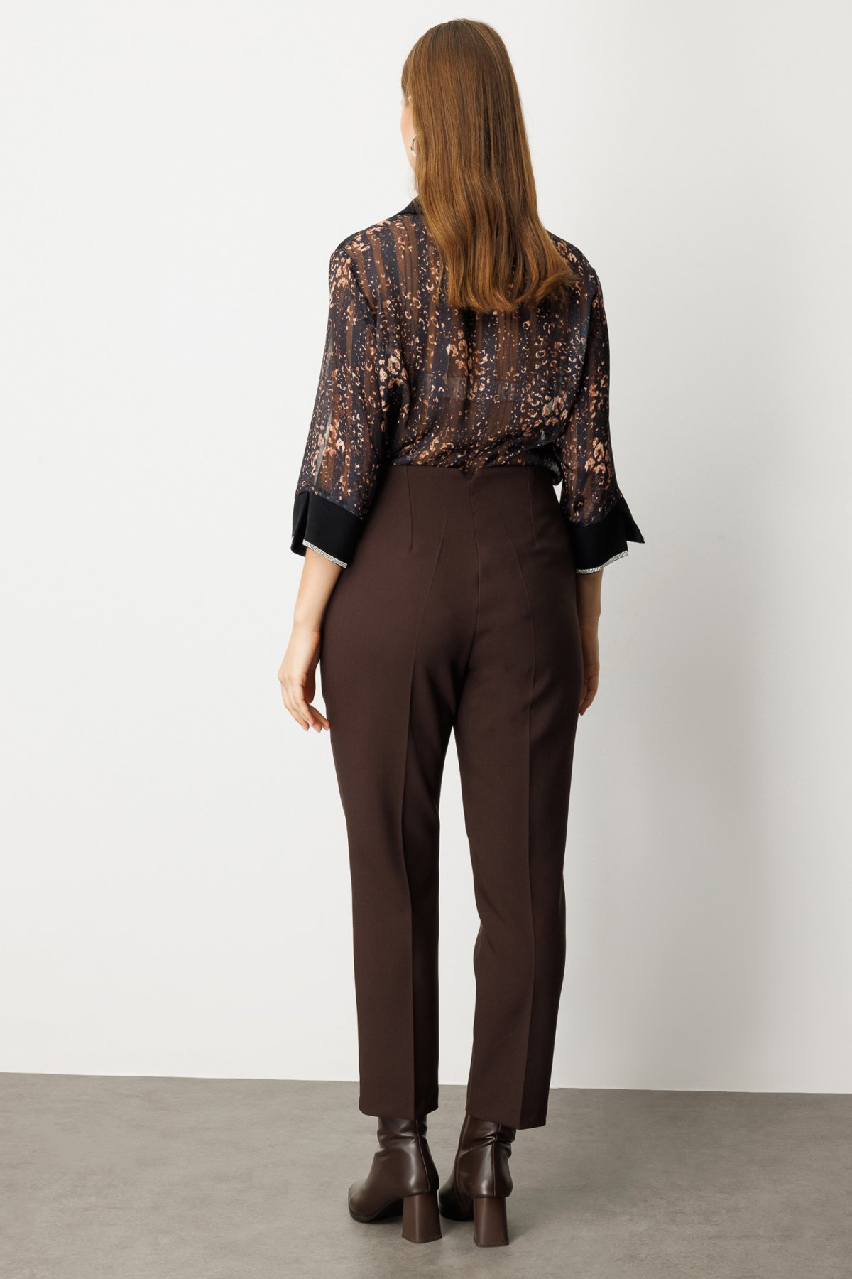 EKOL Beli Kalın Lastikli Boru Paça Pantolon 1111 Kahve