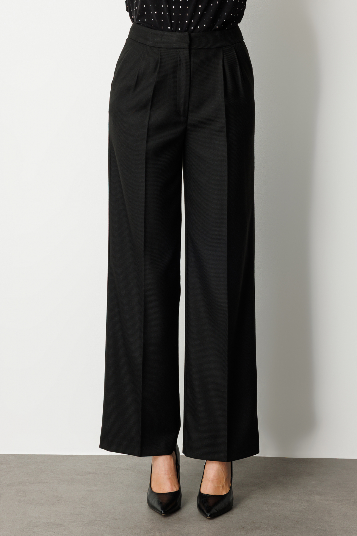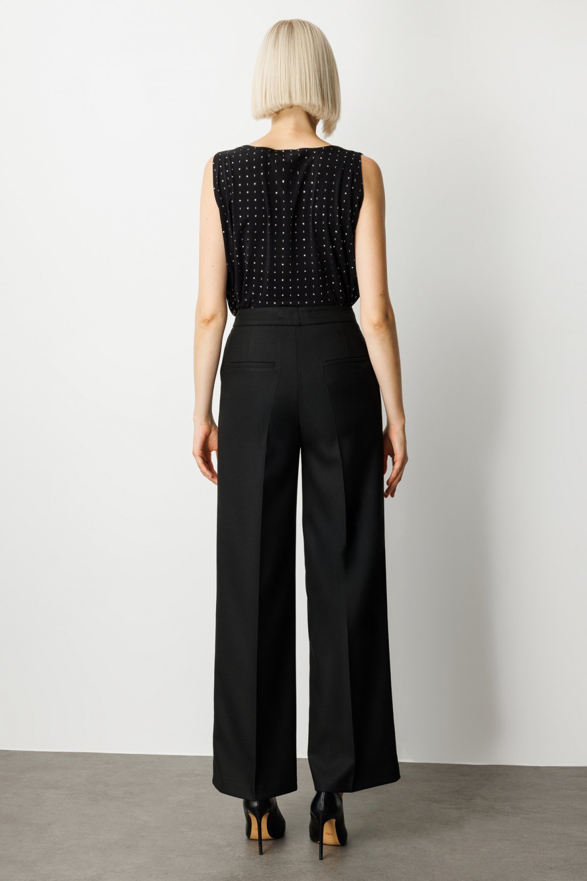 EKOL Pile Detaylı Bol Paça Pantolon 5059 Siyah