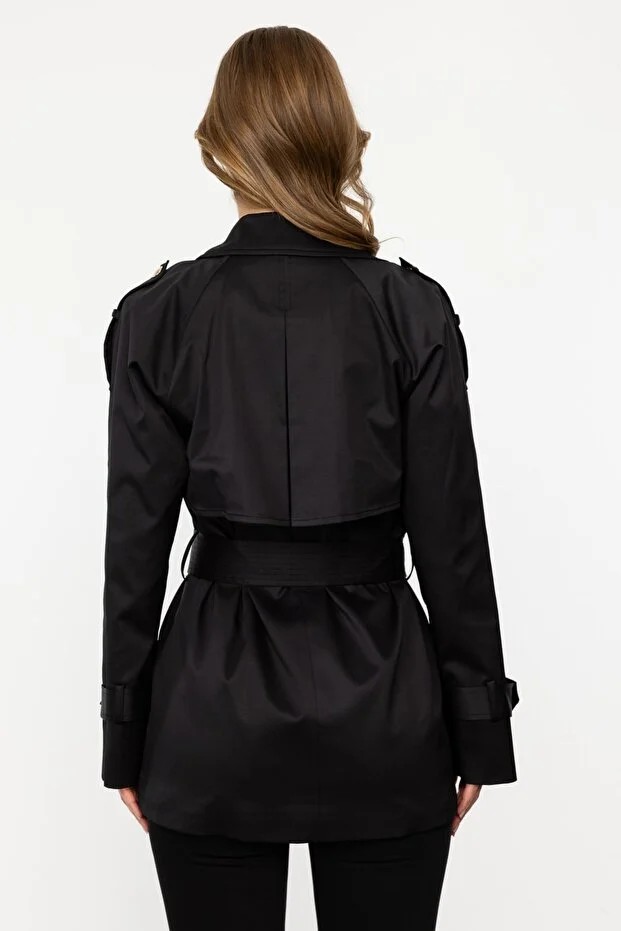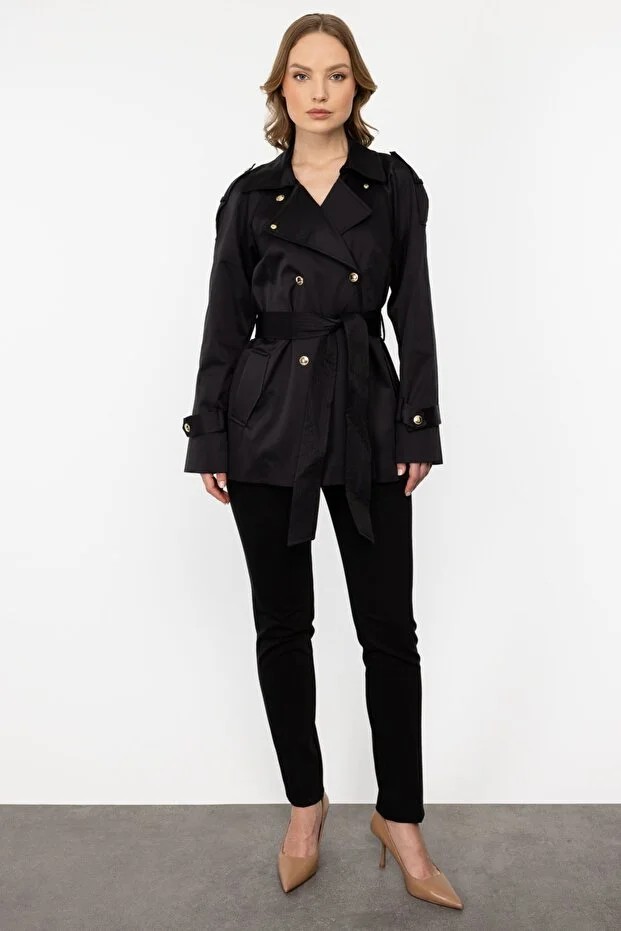 Ürün Adı: Ekol Regular Fit Çıtçıtlı Ve Kuşaklı Kadın Pardesü 06182 Siyah