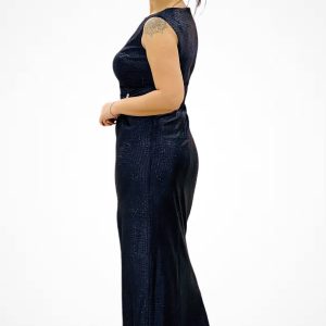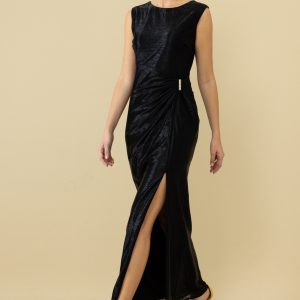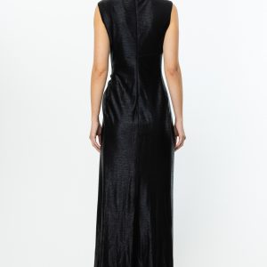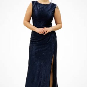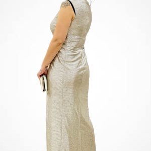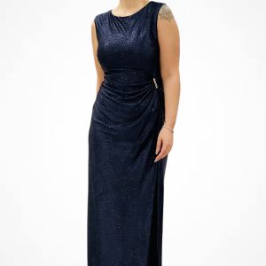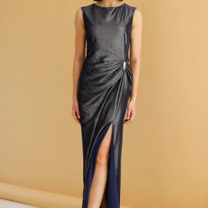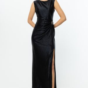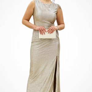EKOL Parlak Kumaş Maxi Boy Abiye Elbise 5092