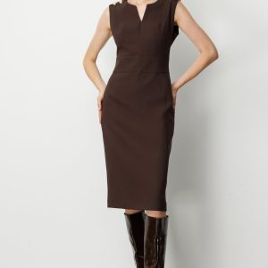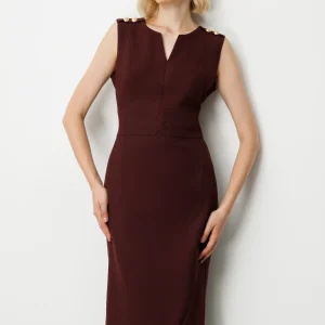EKOL Süs Düğme Detaylı Kolsuz Kadın Elbise 4015