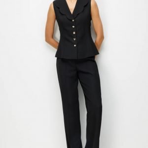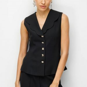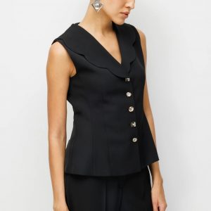EKOL Taşlı Metal Düğmeli Dikiş Detaylı Yelek 1134