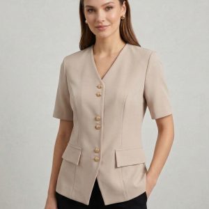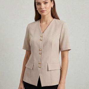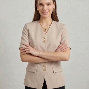 EKOL V Yaka Gold Düğmeli Ceket 1128