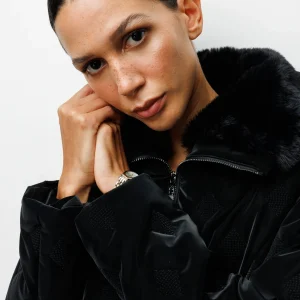 EKOL Yakası Kürklü Desenli Şişme Mont 6619