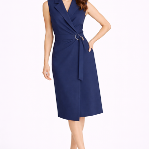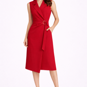 EKOL Yandan Bağlamalı Cepli Midi Boy Elbise 6134