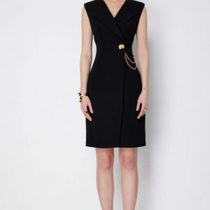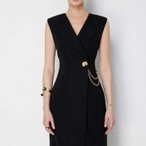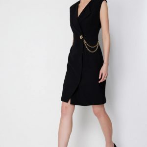 EKOL Zincir Detaylı Kruvaze Midi Elbise 6044