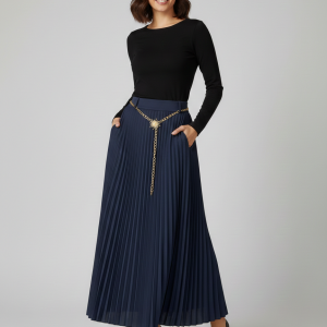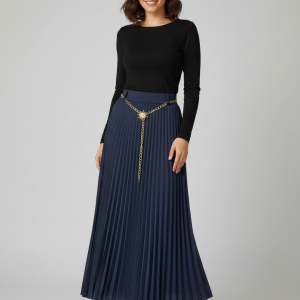 EKOL Zincir Kemerli Pileli Etek 3046