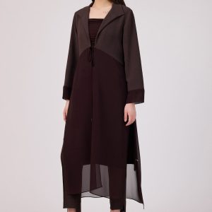 ÜRÜN BİLGİSİ:Yumuşak dokulu kumaş,yakalı,kol bantları alt kısmı katman geçişli şifon kumaş,önü bağcık kapamalı,yanları yırmaçlı ve süs bağcıklı uzun tunik
