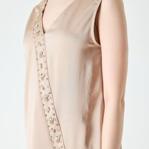ÜRÜN BİLGİSİ:Dökümlü ve hafif saten bluz,v yakalı,sıfır kollu,önü işleme detaylı,düz form şık bluz.
