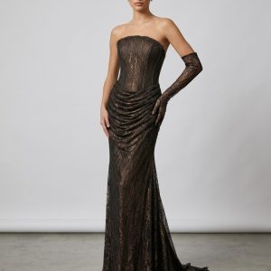 FOR COSTUME Bronz Işıltılı Dantel Korseli Abiye 9892