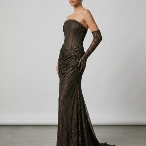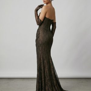 FOR COSTUME Bronz Işıltılı Dantel Korseli Abiye  9892