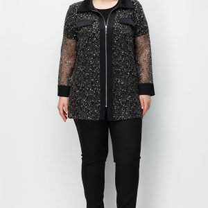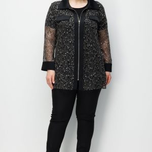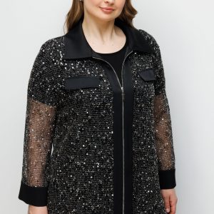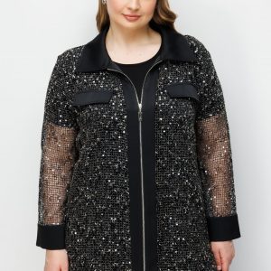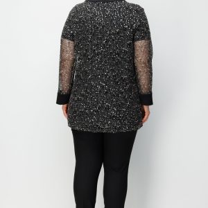 Model: Modern dış giyim formunu gece şıklığıyla harmanlayan, ceket görünümlü ve dökümlü kesime sahip tunik.