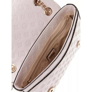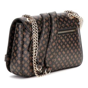 Stil: Çapraz askılı çanta. Boyutlar: Uzunluk 24x, Yükseklik 14x, Genişlik 5 cm. Suni deri dış yüzey. Kapaklı ve çift düğmeli kapama. Açık altın rengi metal detaylar. 4G logosu baskısı. İç ve arka kısımda fermuarlı cep. Ön kısımda logolu metal detay. Yaklaşık 110/130 cm uzunluğunda zincir askı.