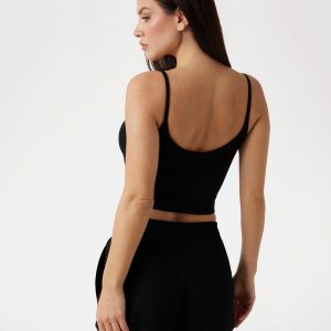 - Rib örgü viskon kumaştan crop kesim kolsuz üst.